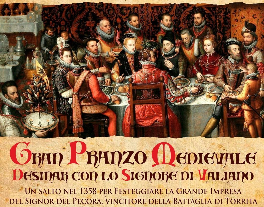 Anno Domini 1358, gran pranzo medievale con il Signore di Valiano, per celebrare la grande impresa del Signor del Pecora, vittorioso nella Battaglia di Torrita, il borgo di Valiano vi invita a prendere parte a un banchetto senza tempo.